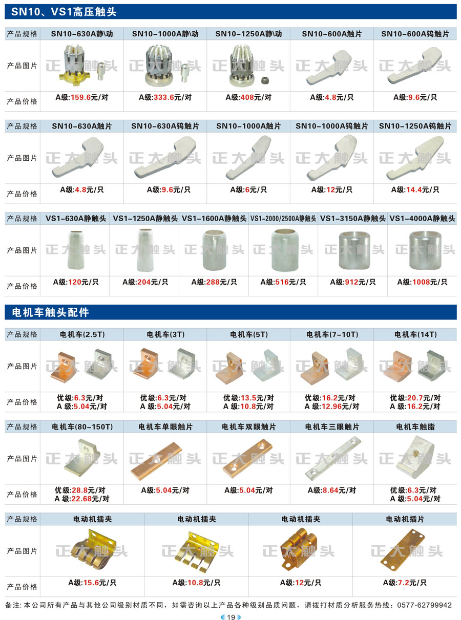 SN10、VS1高压触头、电机车触头配件