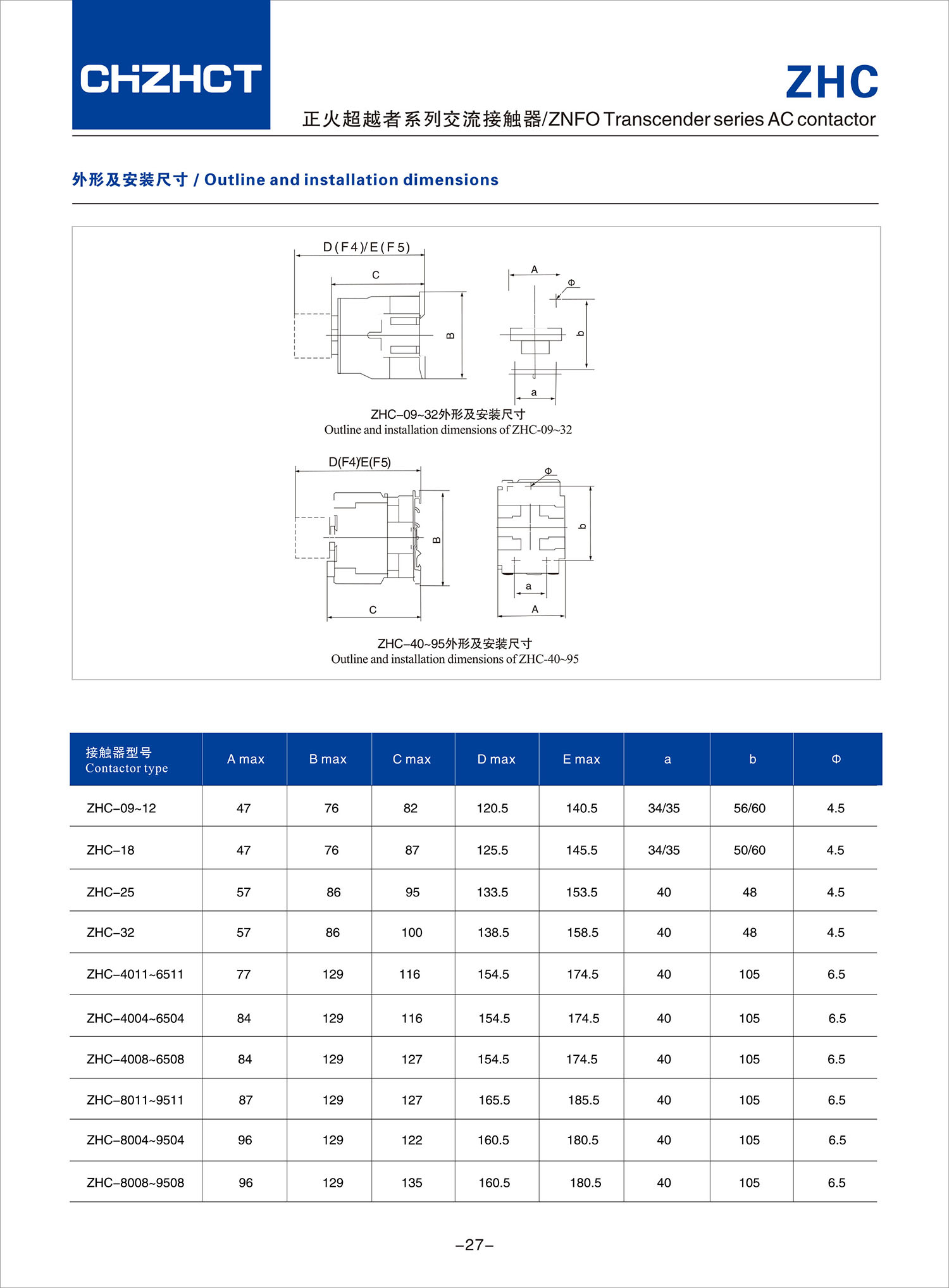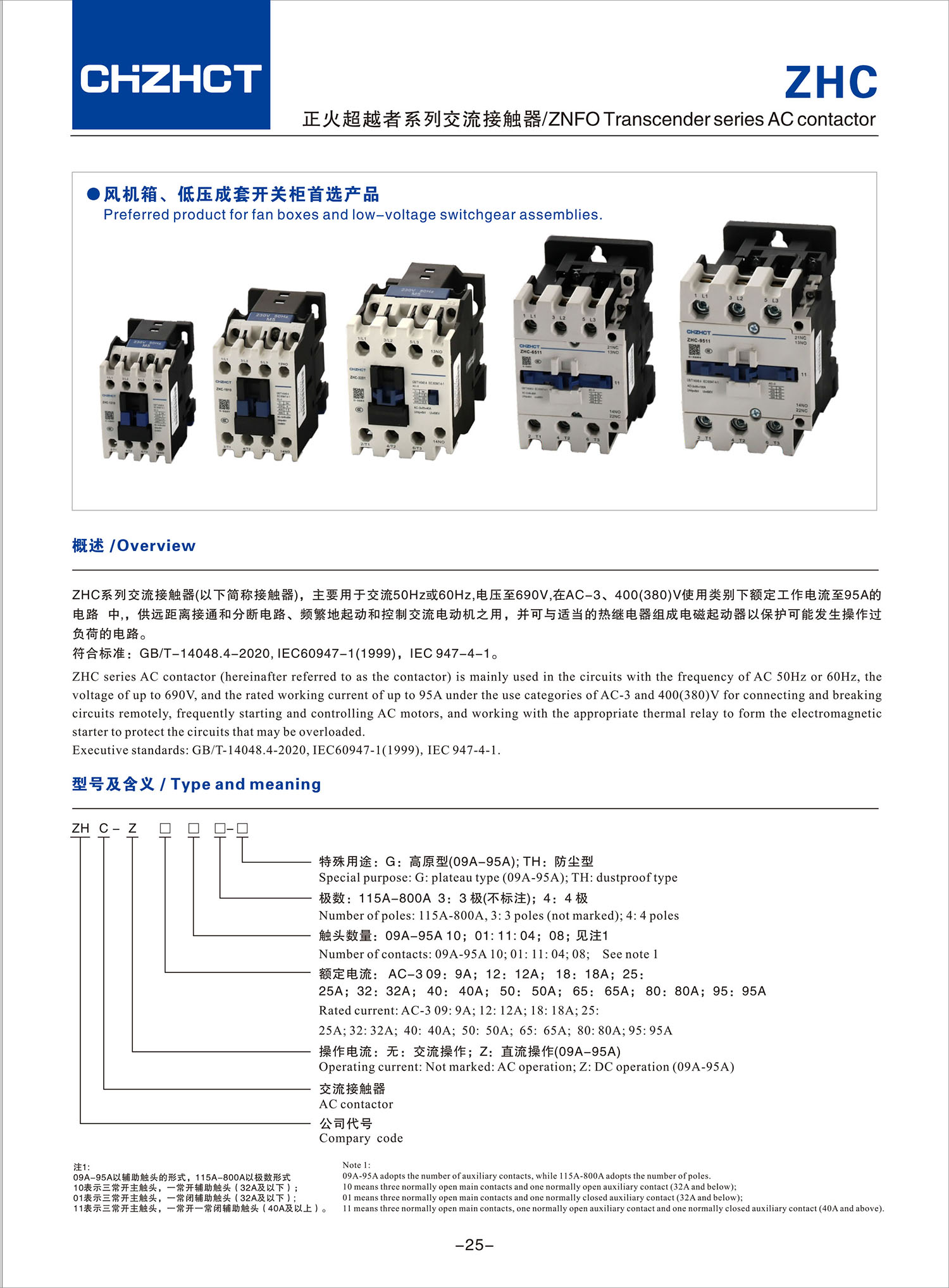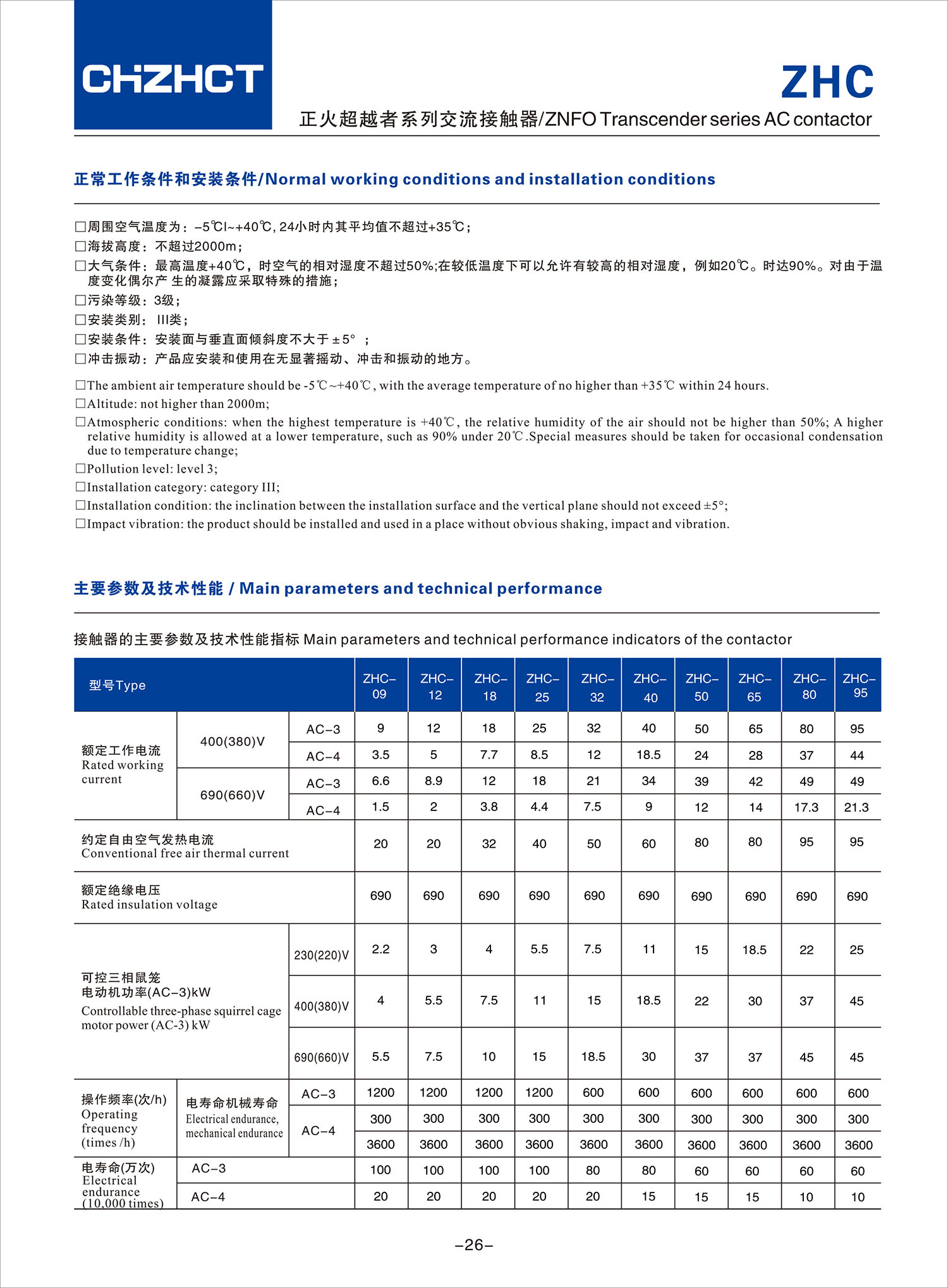 ZHC 正火超越者系列交流接触器产品说明书