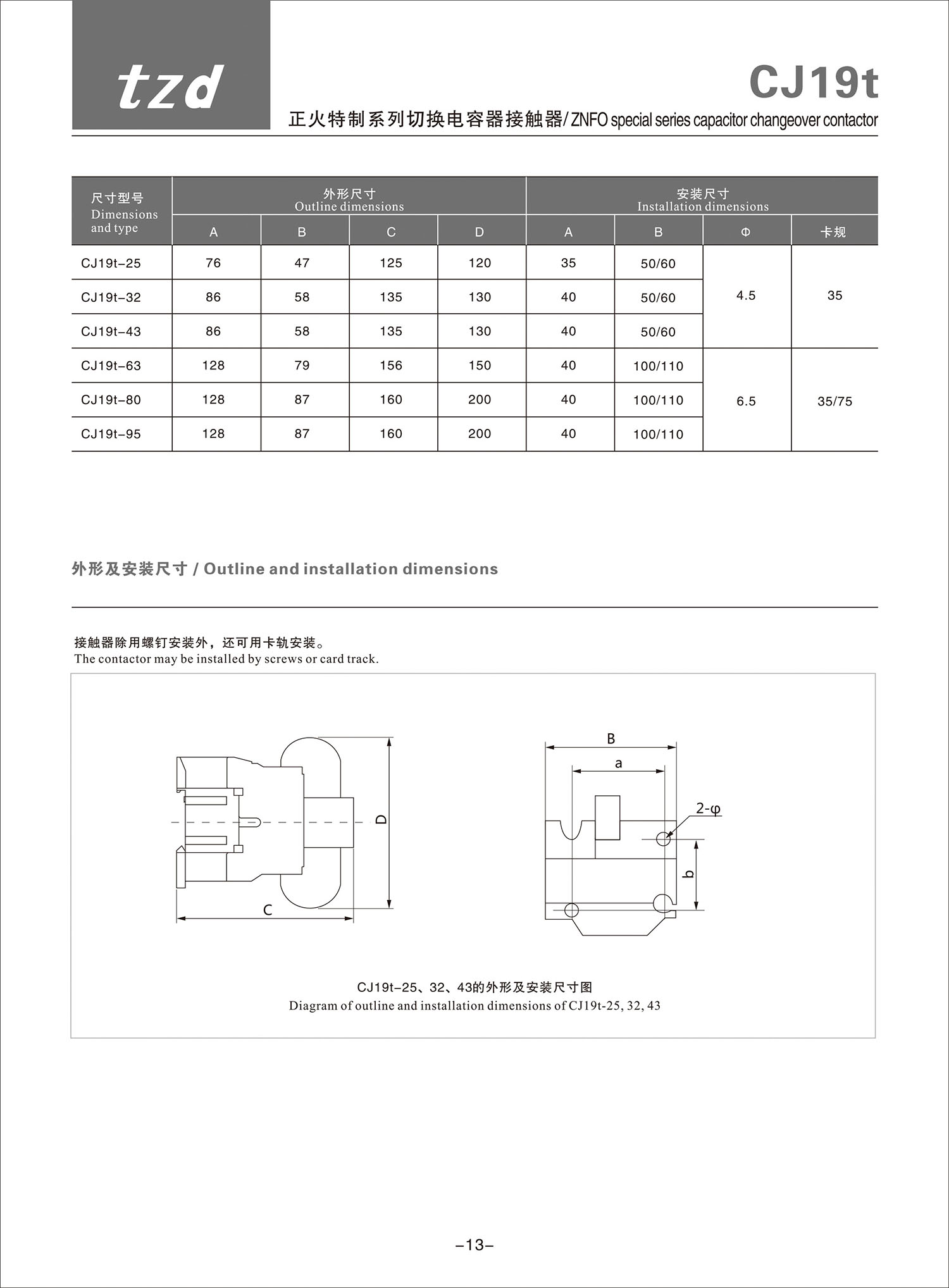 CJ19t 正火特制系列切换电容器接触器产品说明书