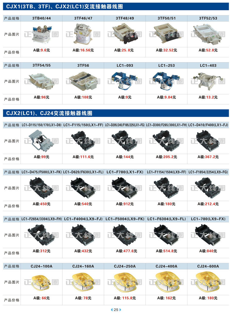CJX1(3TB、3TF)、CJX2(LC1)交流接触器线圈、CJX2(LC1)、CJ24交流接触器线圈