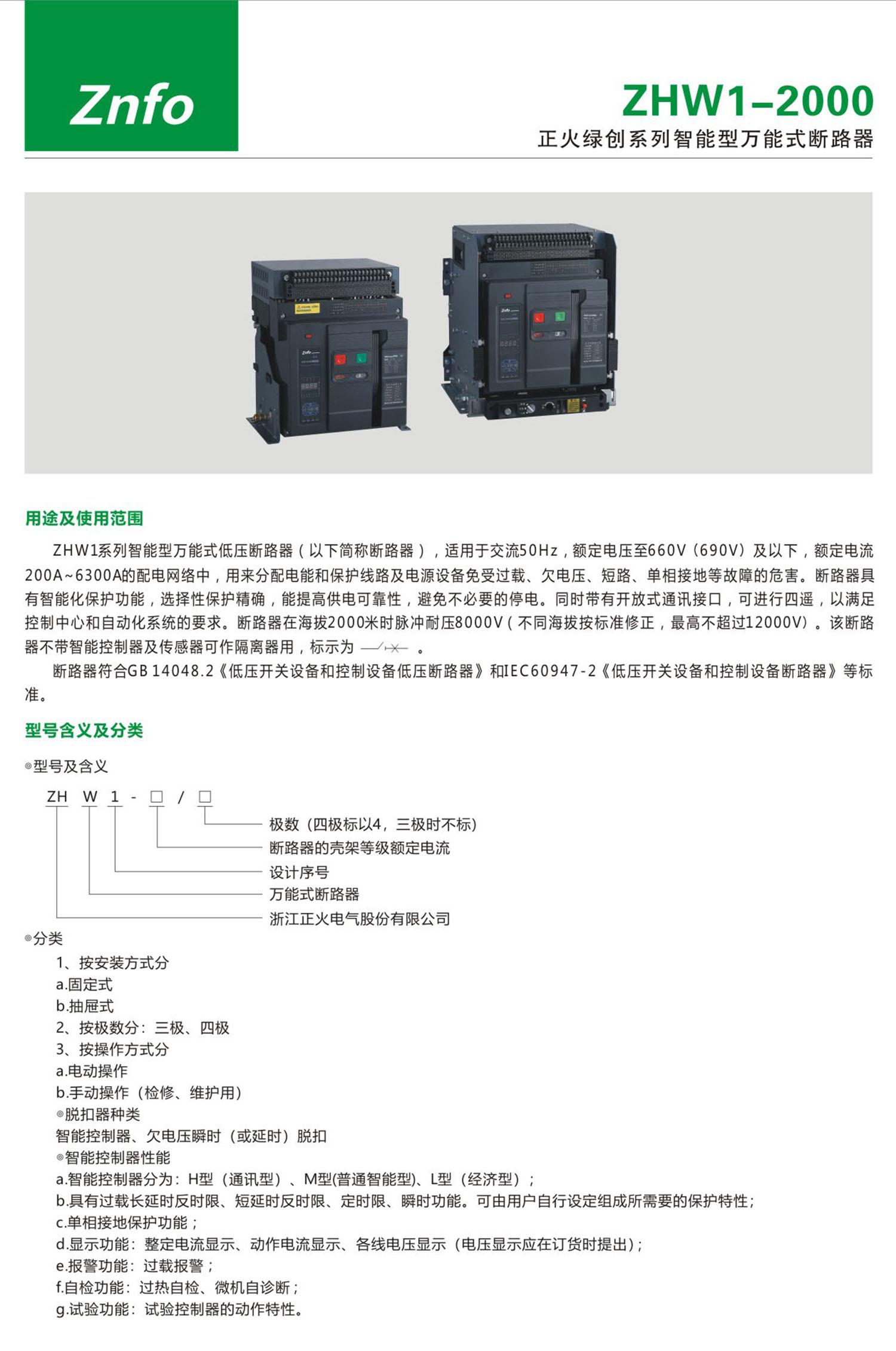 ZHW1-2000系列智能型万能式断路器_正火绿创系列_新品推荐_产品中心_今年会jinnianhui电气股份有限公司