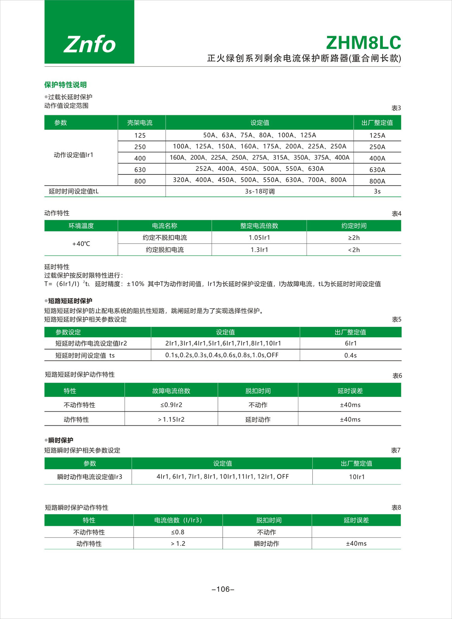 ZHM8LC系列剩余电流保护断路器(重合闸长款)产品说明书